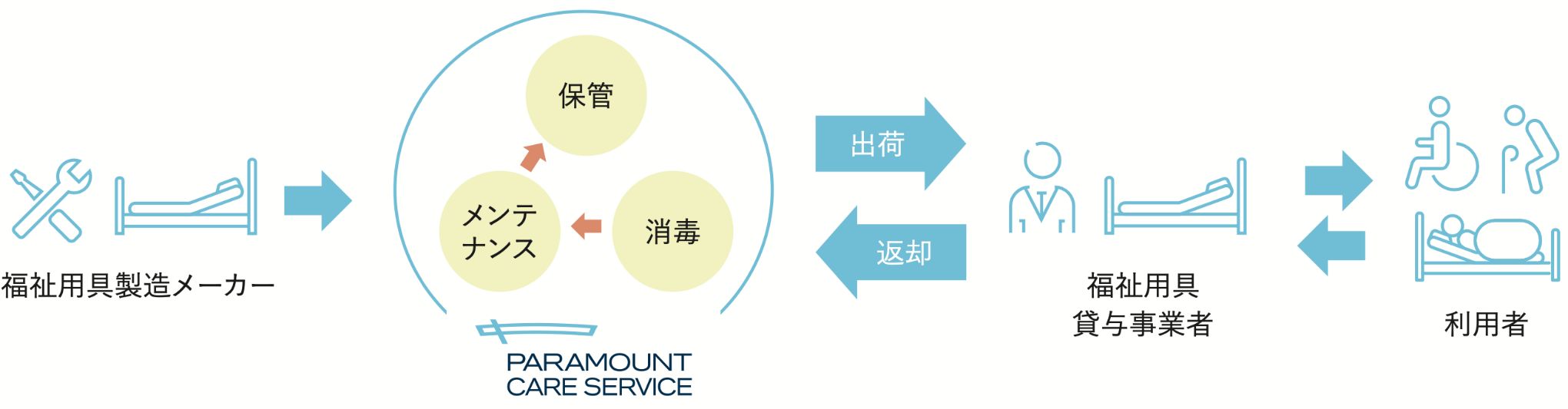 利用者に販売・貸与する事業者に対して、ベッドやマットレスなどの福祉用具を販売・レンタル卸サービスを提供し、在宅介護をサポートします。